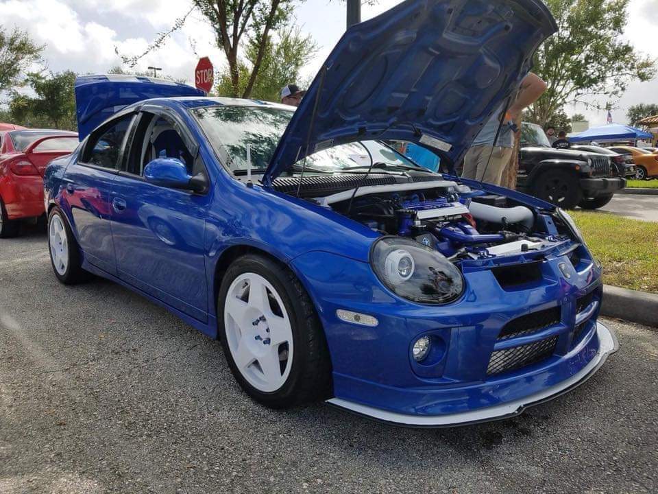 This 2004 SRT4 is finished in PB5/QB5 Electic Blue and powered by a EDV 2.4 DOHC Turbo with DDR - 5 speed SRT4 transmission. It is documented in the Neon Registry under VIN 1B3ES66S24D595543 for production research and ownership history.