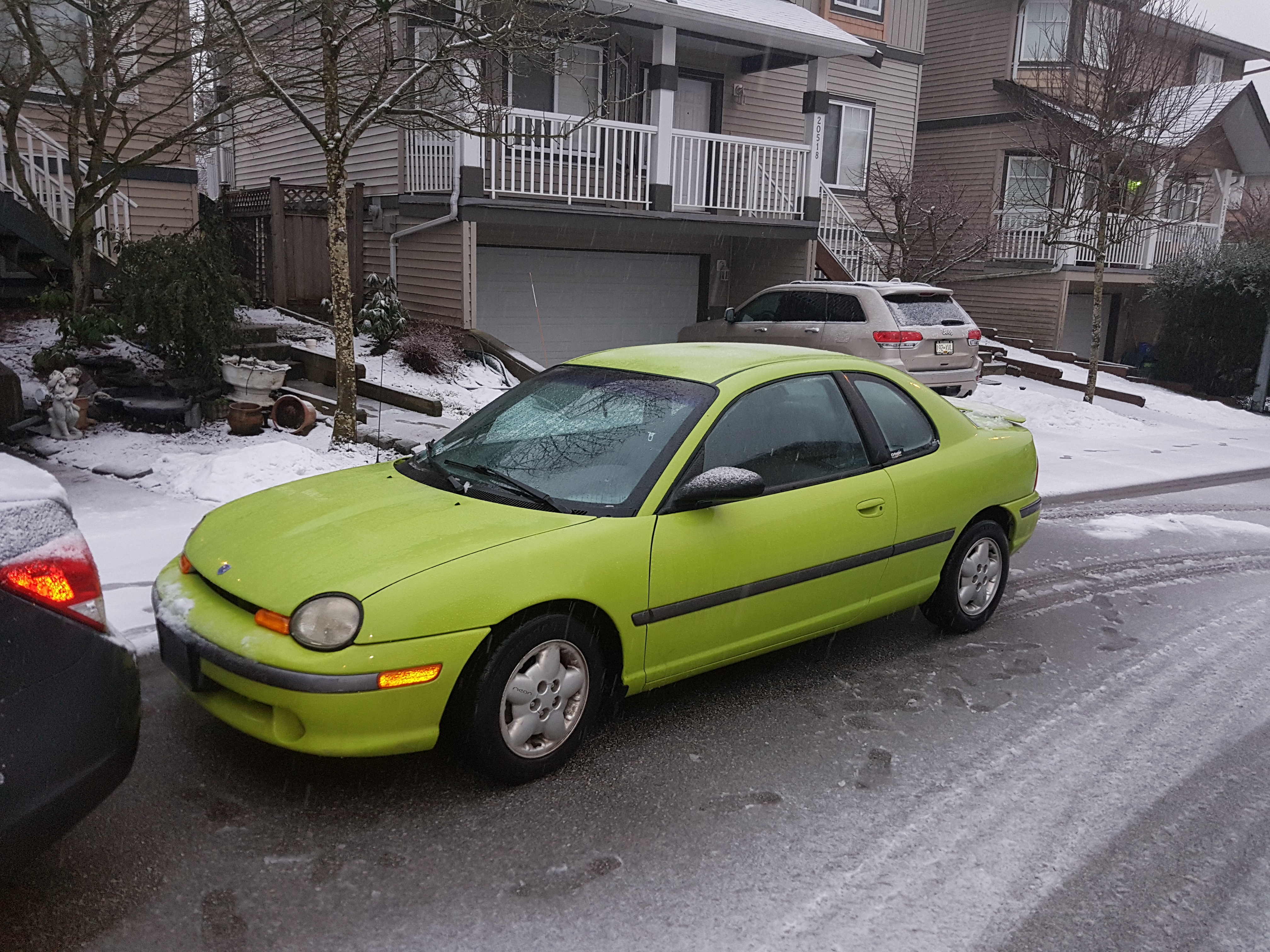 This 1995 Sport Coupe is finished in PF2/QF2 Nitro Yellow Green and powered by a ECC 2.0 DOHC with DD4 - 5 speed Perf transmission. It is documented in the Neon Registry under VIN 1B3ES62Y4SD284798 for production research and ownership history.